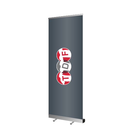 Mit dem Roll-Up Banner von TDF Online Shop in Kreis Warendorf, Münster Gütersloh, Bielefeld, Lippstadt und Soest erhalten Sie ein Banner aus der Basic-Reihe. Dieser ist Silber eloxiert und kommt mit zwei ausklappbaren Füßen sowie einer Klemmschiene daher. Auch für Messen, Events, Ausstellungen, Werbeaktionen und Ähnliches eignet der Roll-Up Banner sich ideal, denn er kann einfach und bequem in der mitgelieferten Transporttasche transportiert werden.