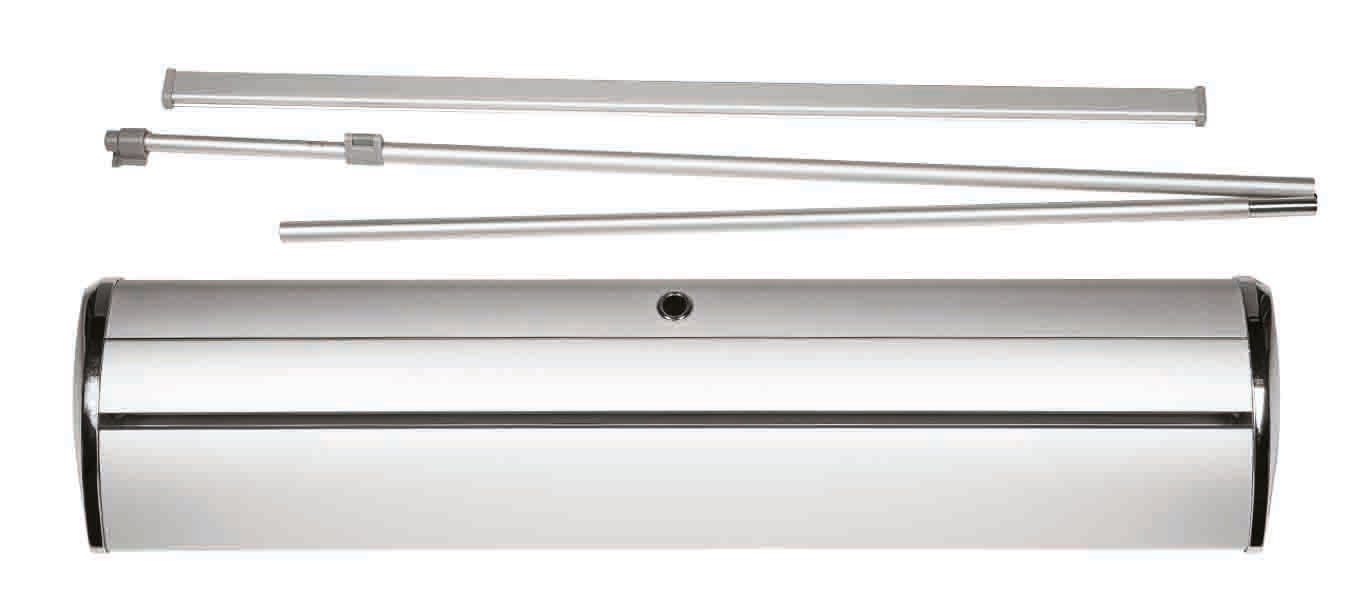 Mit dem Roll-Up Banner von TDF Online Shop in Kreis Warendorf, Münster Gütersloh, Bielefeld, Lippstadt und Soest erhalten Sie ein Banner aus der Standard-Reihe. Dieser ist Silber eloxiert und kommt mit einer Klemmschiene sowie verchromte Endkappen daher. Die beiden verchromten Endkappen stechen bei diesem System besonders hervor und verleihen Ihnen einen exclusiven Auftritt. Auch für Messen, Events, Ausstellungen, Werbeaktionen und Ähnliches eignet der Roll-Up Banner sich ideal, denn er kann einfach und bequem in der mitgelieferten Transporttasche transportiert werden.