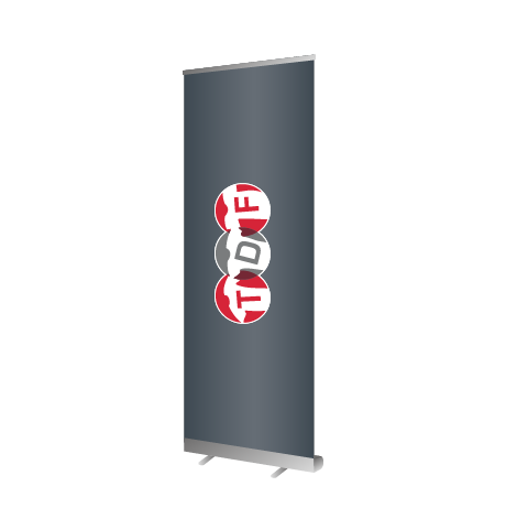 Mit dem Roll-Up Banner Budget von TDF Online Shop in Kreis Warendorf, Münster Gütersloh, Bielefeld, Lippstadt und Soest erhalten Sie ein Banner aus der Basic-Reihe. Dieser ist Silber eloxiert und kommt mit zwei ausklappbaren Füßen sowie einer Klemmschiene daher. Auch für Messen, Events, Ausstellungen, Werbeaktionen und Ähnliches eignet der Roll-Up Banner sich ideal, denn er kann einfach und bequem in der mitgelieferten Transporttasche transportiert werden.