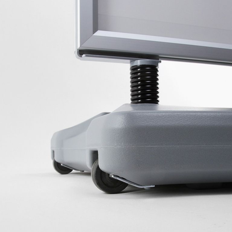 Speziell für Ihre Werbung in windigen Bereichen ist der Kundenstopper WINDTALKER® von TDF Online Shop in Kreis Warendorf, Münster Gütersloh, Bielefeld, Lippstadt und Soest die optimale Lösung. Sein mit Wasser oder Sand befüllbarer Standfuß bietet in Verbindung mit den Spezialfedern aus Stahl eine hohe Standfestigkeit. Für den einfachen Transport sind im Standfuß Rollen integriert. So können Sie den Kundenstopper trotz des Standgewichtes einfach bewegen. Der Aluminium-Schnellwechselrahmen kann doppelseitig mit Plakaten bestückt werden und garantiert Ihnen auch bei hohen Windstärken eine auffällige Werbemöglichkeit.
