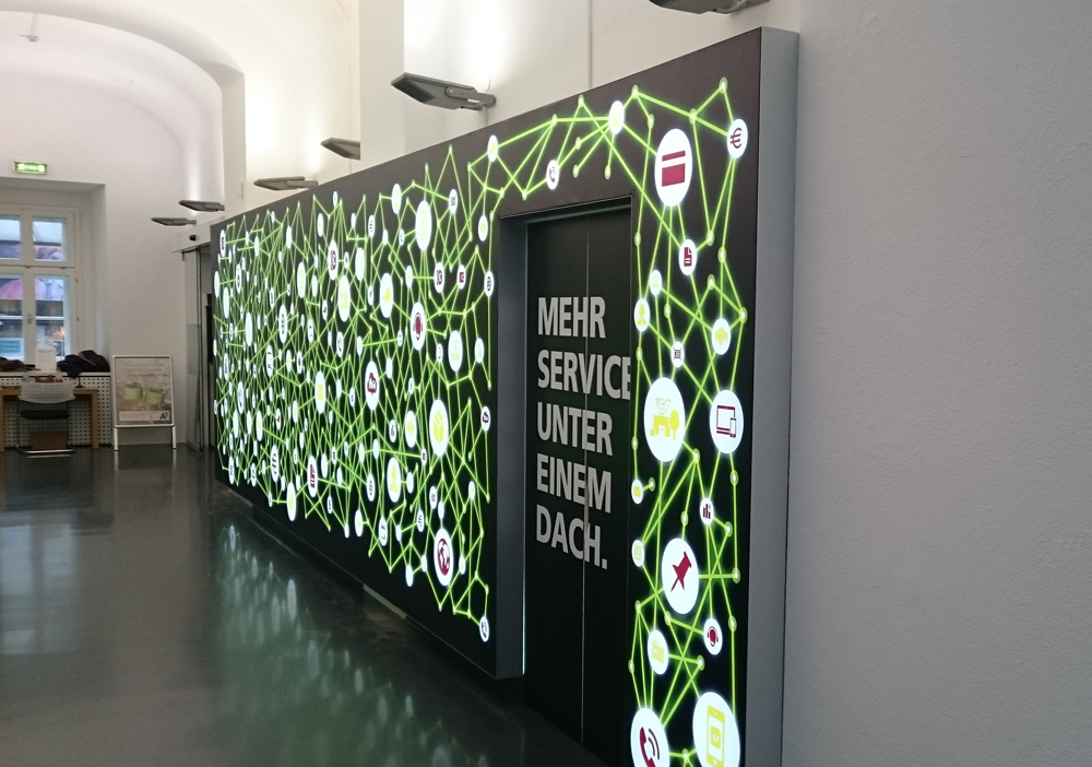 Die Rahmen kommen steckfertig zu Ihnen ins Haus. Einfach die Rahmenteile miteinander verbinden, die LED-Leisten mittels Stecksystem mit dem Trafo verbinden und die Grafikpaneele mittels Gummilippe anbringen – schon fertig: Ihr Display ist einsatzbereit.