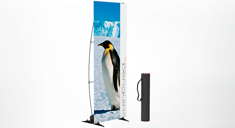 Das Display-System für den kompromisslosen Außenseinsatz! OUTDOOR penguin von TDF Online Shop in Kreis Warendorf, Münster Gütersloh, Bielefeld, Lippstadt und Soest ist das extrem stabile Display für den Außeneinsatz, das durch sein zeitlos puristisches Design ebenso überzeugt wie durch die einfache Handhabung und seine Anwendungsvielfalt. Zwei Wasserrollen zur Beschwerung des Fußes sorgen dafür, dass das System auch bei Wind stabil steht. Die flexible Struktur des Systems aus Carbon, Aluminium und Stahl bewegt sich im Wind – mit dem Wind. Das OUTDOOR penguin ist absolut Wasser-unempflindlich. Ein großartiges Outdoor-Display. Nur extrem hochwertige Materialien kommen hier zum Einsatz, was eine lange Haltbarkeit garantiert. Carbonstäbe, ein klappbarer Standfuß aus gebürstetem Edelstahl, Aluminiumbahnträger und feinst verarbeitete Spritzgussteile. In Summe ergeben diese Teile ein Design-Display für höchste Ansprüche. Fußteile ausklappen, Carbonstäbe zusammenstecken und das Banner einspannen – in nur wenigen Sekunden ist der Aufbau abgeschlossen. Jetzt wird das Display noch mittels zweier Stahlseile und der zwei Wasserrollen stabilisiert und der Außeneinatz kann beginnen. So wird Ihre Botschaft perfekt transportiert. Zusätzliche Elemente, Erweiterungs- und Umrüstungssets ermöglichen einen multifunktionellen Einsatz. Der Wechsel des Grafikpaneels ist in wenigen Sekunden ohne Werkzeug möglich. So können nur ein System für viele Motive genutzt werden. Die Struktur ist extrem belastbar und bietet optimale Spannung für jede Art von Paneel. Alles zusammen, in der mitgelieferten Transporttasche über die Schulter getragen, wiegt penguin nicht einmal 5 kg.